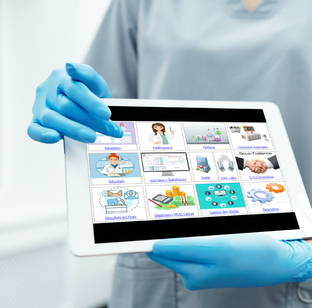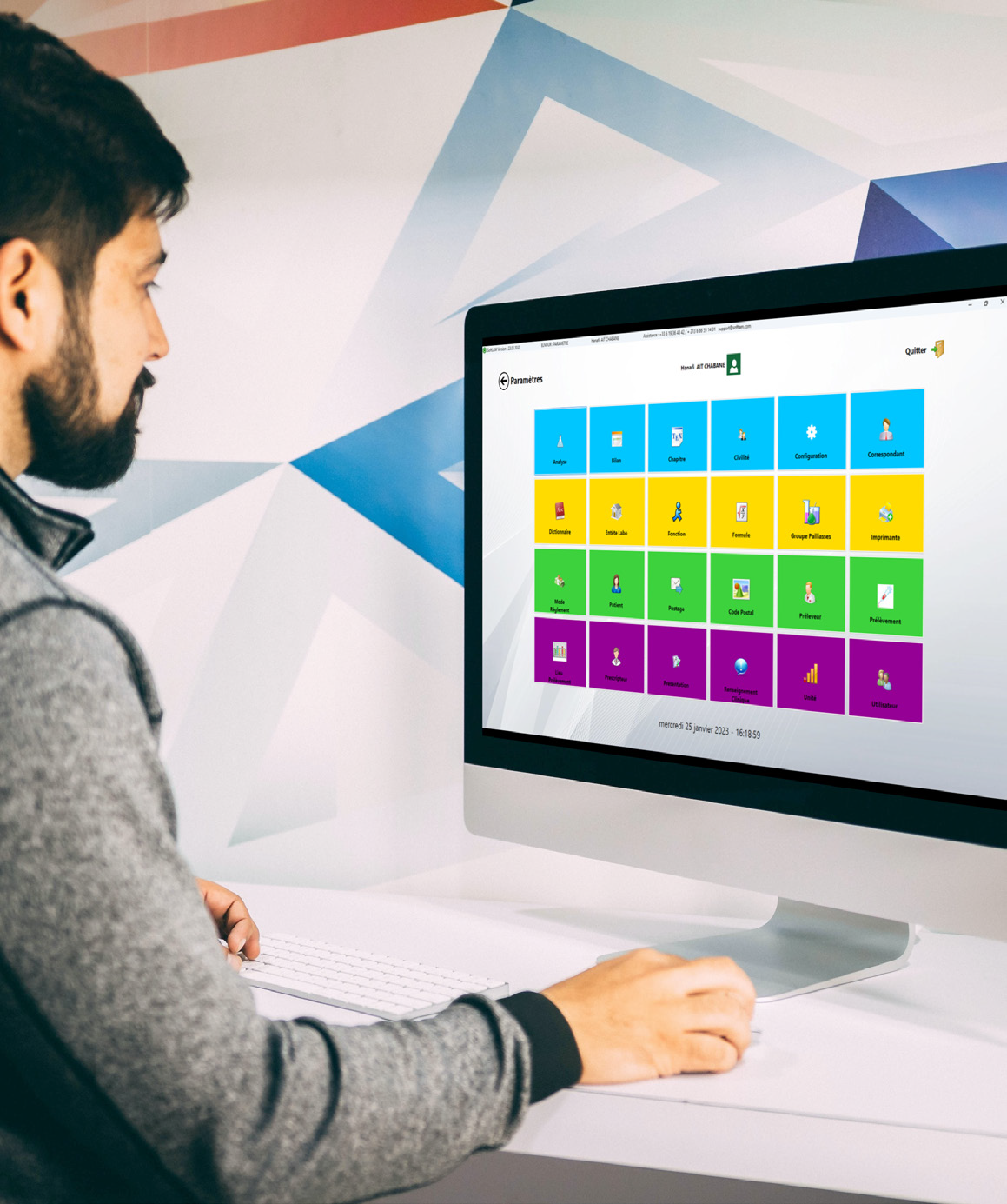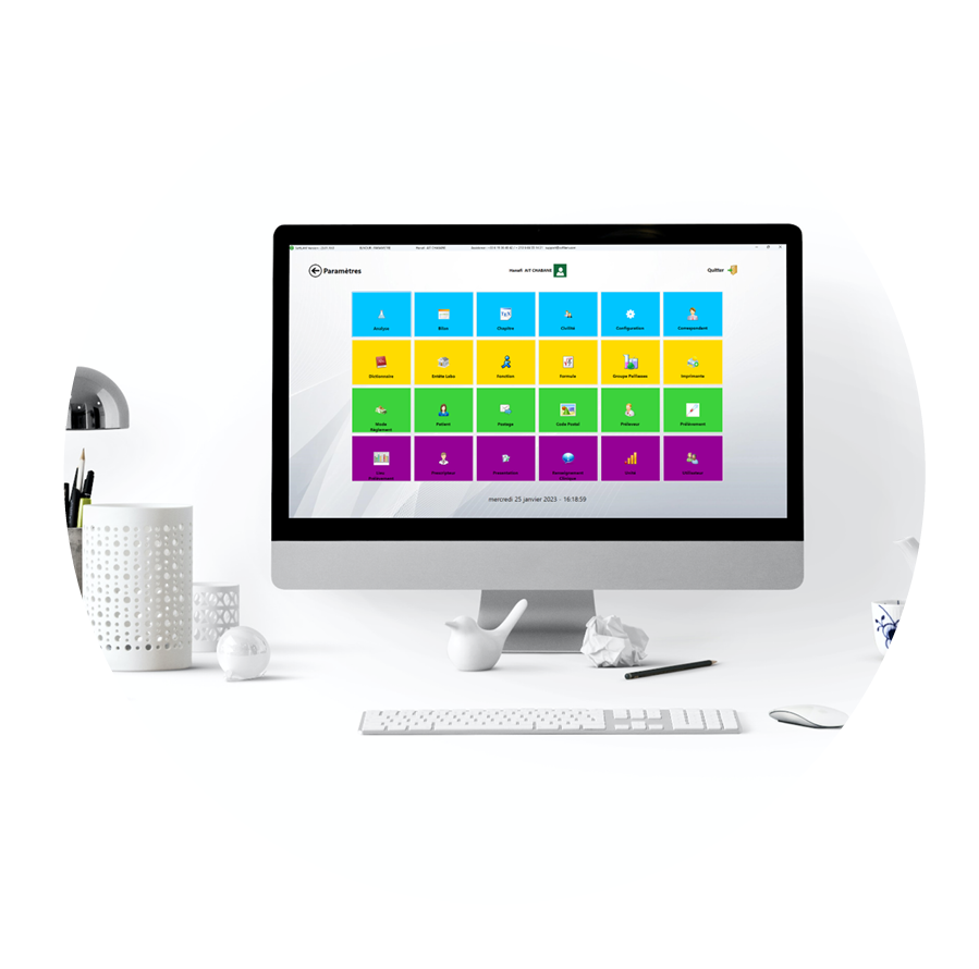SoftLAM digitalise le parcours des analyses et toutes les activités du laboratoire. Il dispense l’équipe des tâches répétitives de la gestion technique, administrative, financière, fluidifie l’accueil des patients et supprime les risques d’erreurs.